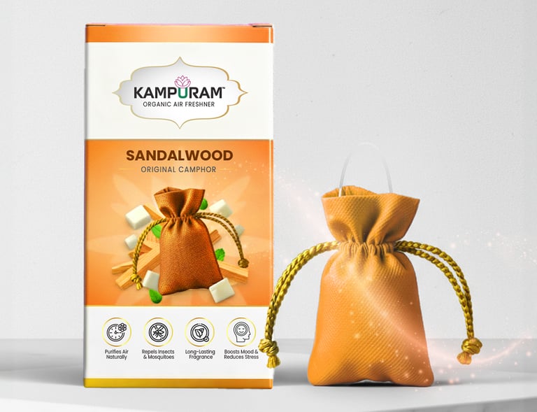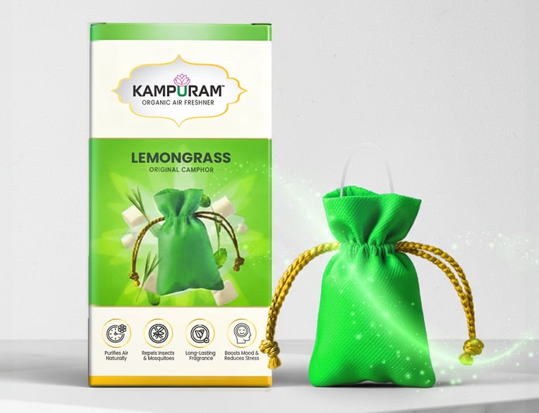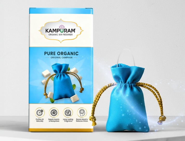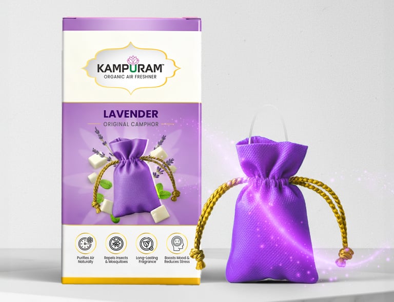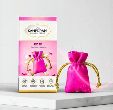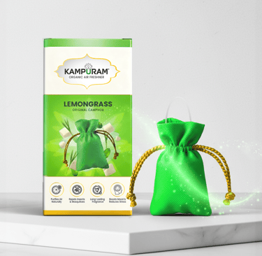 At Kampuram, our belief is that the environments we inhabit should not only appear fresh, but also possess a sense of purity, safety, and positivity. That's why we produce our organic air fresheners in India, incorporating a mix of 100% natural camphor and genuine fragrances such as Rose, Jasmine, Sandalwood, Lavender, Lemon, Lemongrass, and Pure Camphor.